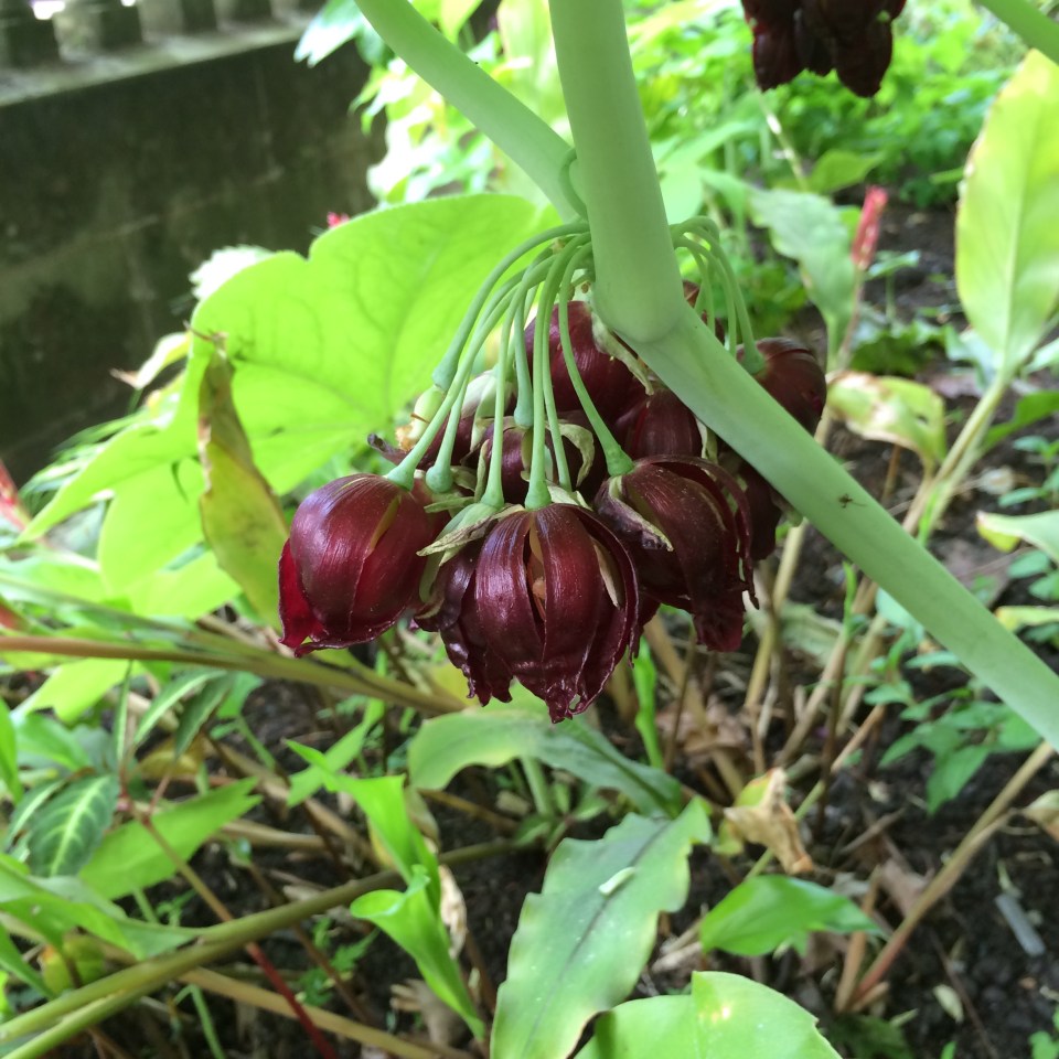 Podophyllum pleianthum a close relative of our three native groundcovers, Achlys triphylla, Vancouveria hexandra and its more southern cousin V. chrysantha. This Asian species is the most dependable for me in my heavy soil. It’s foetid scented flowers are clustered together beneath the large leaves. Berberidaceae Ranunculales Eudicots