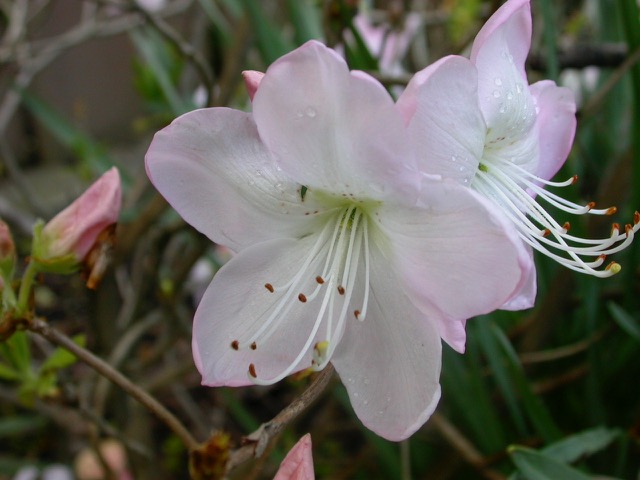 Rhododendron schleppenbachii DSCN0384 ← Previous Next → Rhododendron schleppenbachii, a member of family Ericaceae, with the typical 5 petal corolla, and in this case 10 stamen. Some species only have 5 others much more.