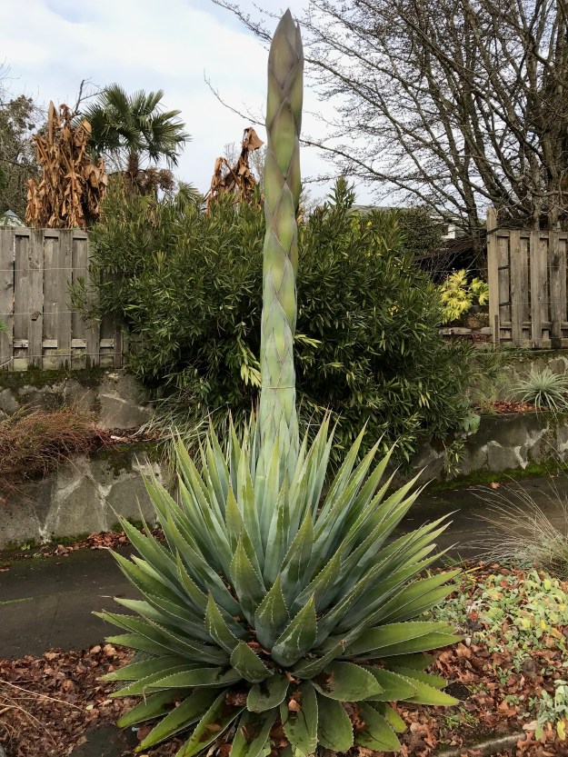 Those of you who have been following Monte, might want to check out this page on the flowering of the Agave montana at the Ruth Bancroft Garden, in ’18. It is the first/only other one of its species that I’m aware of to bloom in the continental US and its performance was very different in multiple ways. Seedling variation? Growing conditions? Latitude? I don’t know why! Ruth Bancroft was an intrepid and knowledgeable collector of succulents, among them Agave. Her garden, her legacy, is amazing and is open to the public in Walnut Creek down in the Bay Area!]