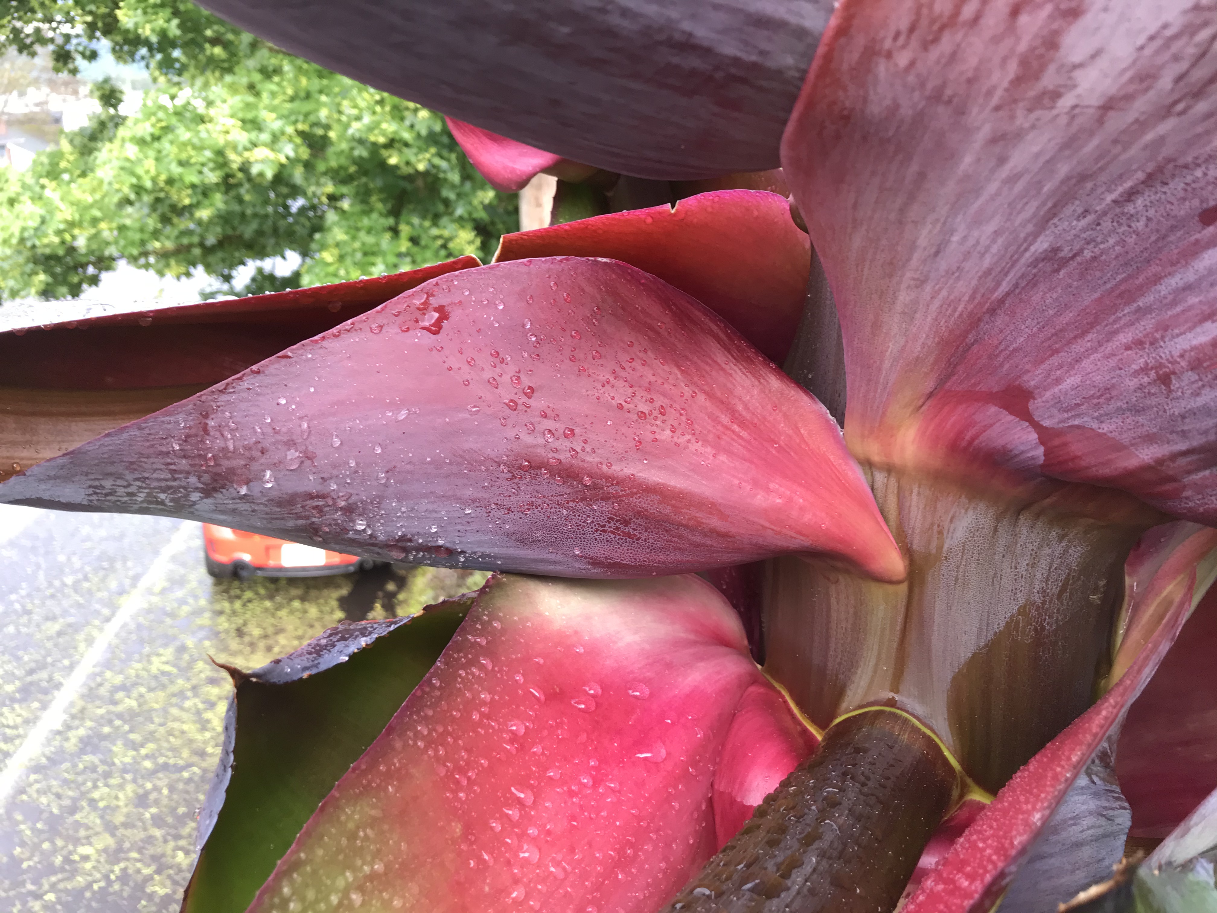 May 3 At this stage the inside of the large folded bracts are almost bright ruby red, the outside slightly more dull. The attachment and stretch of the bracts here where they join with the primary and secondary peduncles reminded me of illustrations of muscle to bone connection at joints.