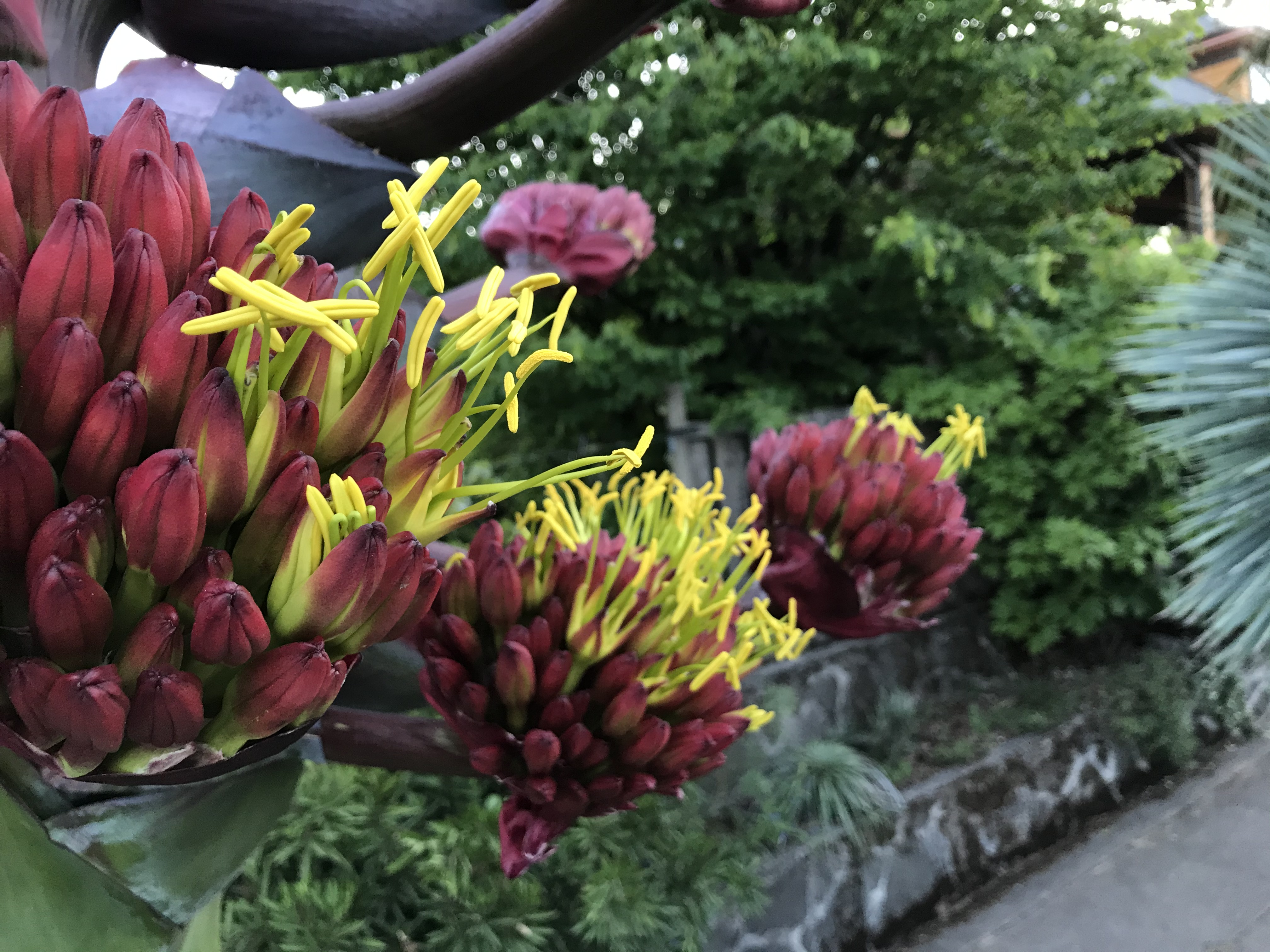 IMG_8144 ← Previous Next → May 8 These pics show the opening flowers extended beyond those being held in reserve proving that my idea of all of the flowers in a ‘cluster’ would open at the same time, as did the clusters on my A. Sharkskin when it bloomed four years earlier.