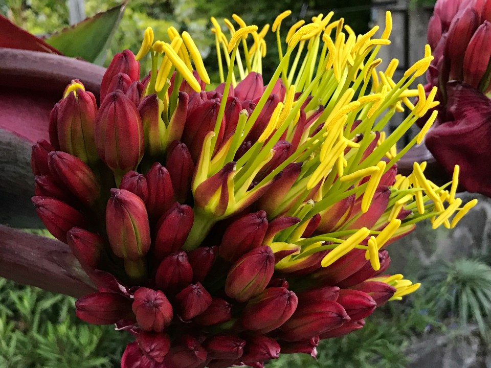 May 8 You can clearly see how the pedicel and ovary extend prior to flowering here. The red sepals then split open in three displaying the yellow anthers and petals while the filaments and styles are yellow green. The contrast is striking from the ground.