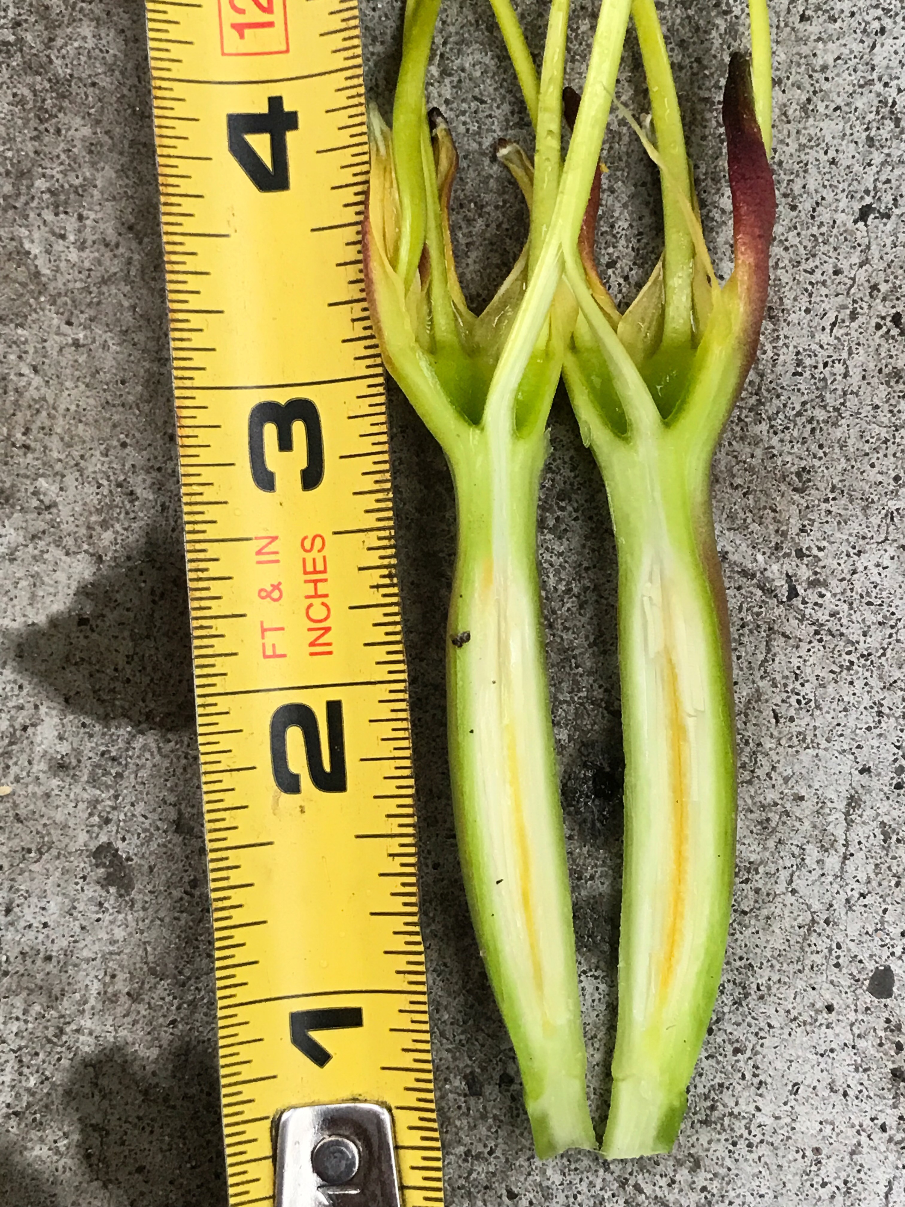 IMG_8482 ← Previous Next → You can see how simple these are even in section, the style split in the center connected to the long ovary, the filaments of the anthers connected near the base of the small petals, wrapped in the shrinking sepals.
