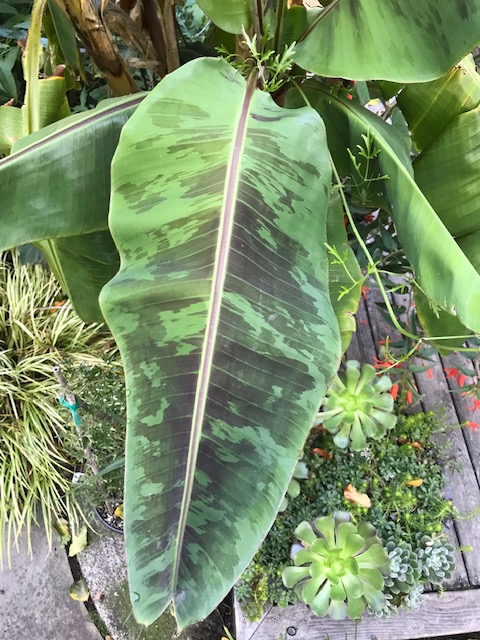 IMG_1752 ← Previous Next → Though small, the leaves of Musa accuminata ‘Zebrina’ are small they have a typical Musa width to length ratio, broader than Musella’s. Their leaf tissue is also relatively thin.