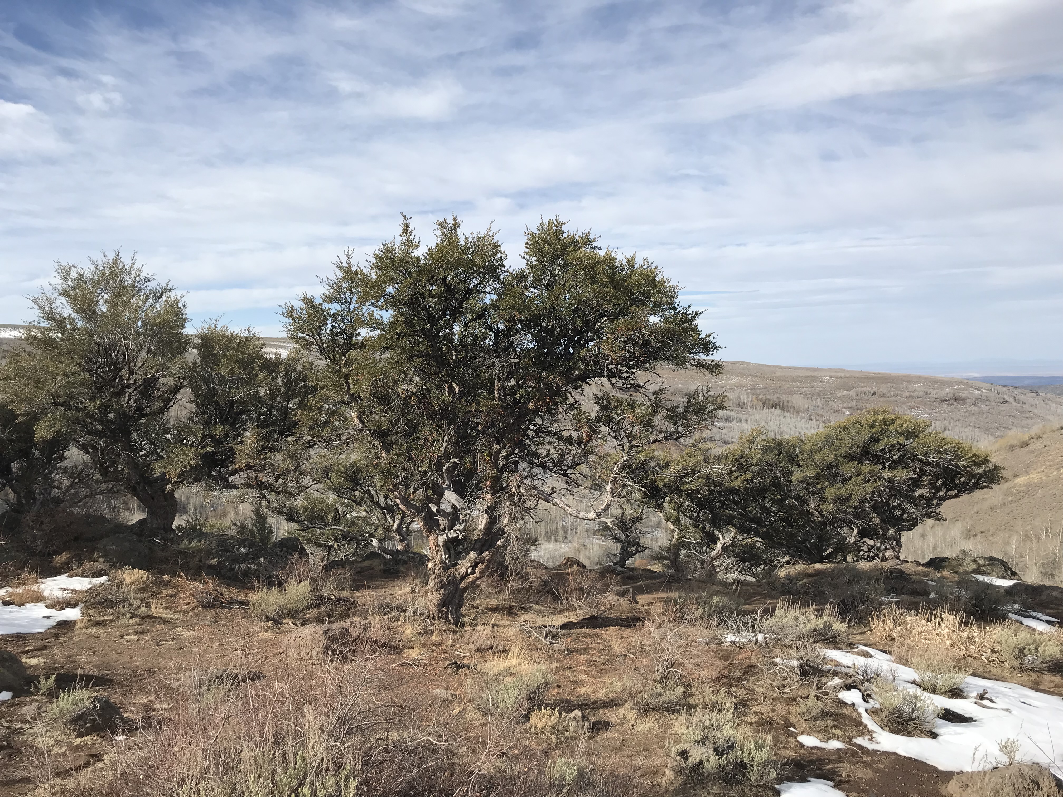 I grew up locally with five large native Junipers in our lawn. We climbed in them, got pitchy hands and watched the birds feed on them in the Fall. These aren’t trees people normally plant in their home landscapes, just try to find one in a local garden center, but they are the iconic tree for this part of the arid West. They are supremely well adapted here and so common that most people look down on them, an attitude which has become even more so as land owners and government agencies grapple with controlling their domineering spread, due largely to our having eliminated the long cycle fires burning through. Locally Junipers are often discouraged because they are flammable and a stand of them can create a fire hazard, but a Juniper here or there spread across a landscape….(We are a difficult species. We transform the landscape and create conditions to our liking that are in direct conflict with our local native landscapes and then work to eliminate them for their habitual and necessary, cyclic pattern of burning. It would seem that a vigorous, green turf lawn is the only acceptable landscape.)