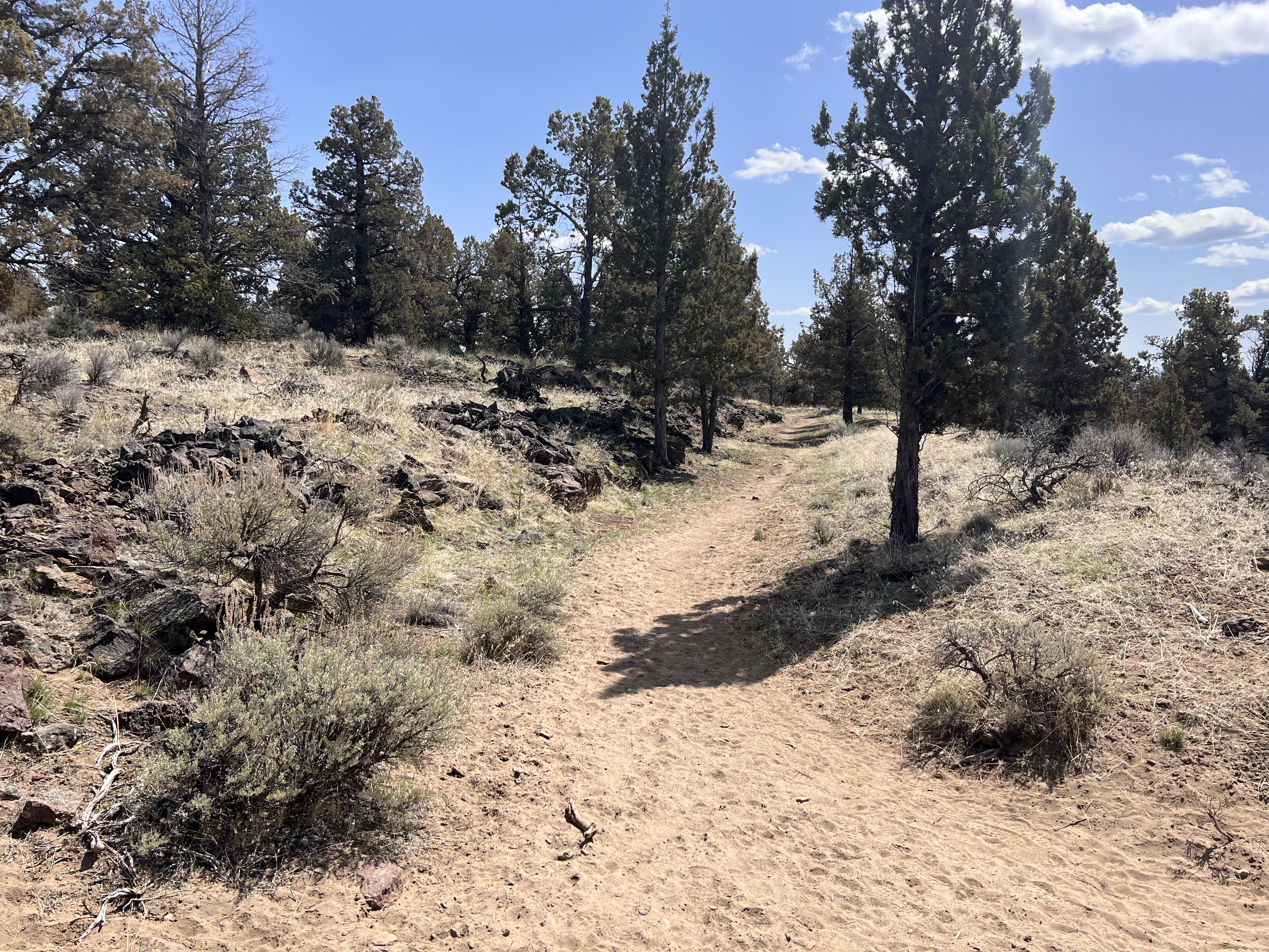 This is a thin soiled slope dominated by Juniper, the more open areas dominated by Sagebrush, Antelope Bitterbrush and Rabbitbrush. The path lies within an irrigation canal created over 100 years ago, a failed attempt to bring water and agriculture to the immediate area.