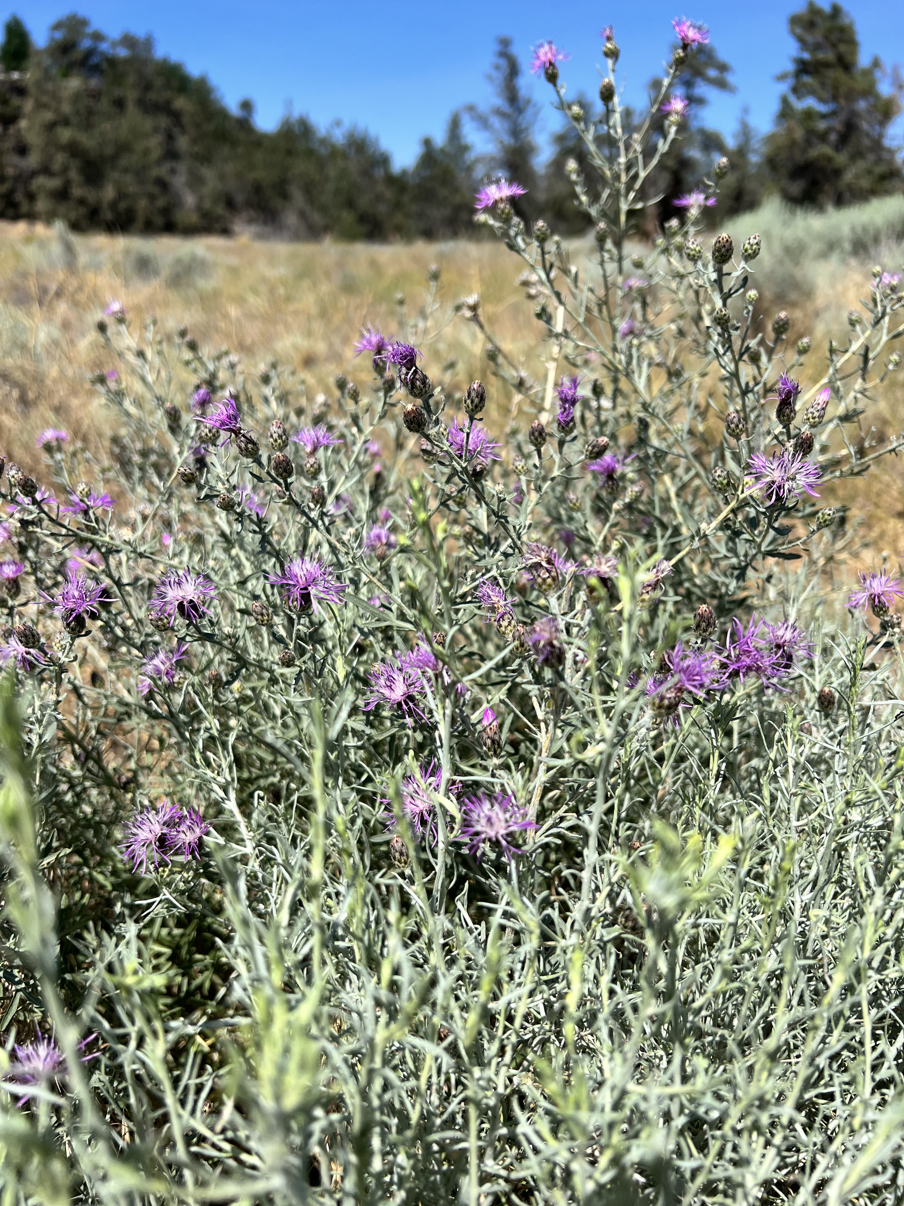 There are four species of Knapweed commonly found in central and eastern Oregon which have found their way here from the Russian Steppe, any of which can dominate our local landscapes. These include Spotted Knapweed, Centaurea maculosa (syn. C. stoebe), Diffuse Knapweed, Centaurea diffusa, Russian Knapweed Centaurea repens, and Yellow Starthistle, Centaurea solstitialis. (The genus also includes Bachelor’s Button, Centaurea cyanus, which so far has not become the problem these have being more of a ditch weed). Russian Thistle, Salsola tragus, our ubiquitous ‘Tumbleweed’, sadly now iconic and emblematic of the ‘Old West’, is another Russian Steppe transplant. The all too familiar and dominating Cheatgrass, Bromus tectorum, the most widespread and destructive of the Steppe weeds, is another escapee/invader from the Russian Steppe. Once in a landscape these effectively work toward creating and maintaining conditions that ‘prefer’ them hastening the decline of native flora and with that, native fauna upon which many species depend. Some can absolutely dominate our regional landscape often crowding out everything else while contributing little in terms of either wildlife value or for grazing livestock. Ignoring them will only assure their march to increase and dominance. Again these are not native. Many are extremely disruptive of even intact native plant communities.