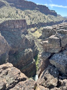 The Crooked River at the pump out site of Opal Springs. You can see the pipe on the far slope still climbing up out of the canyon from the river some 500′ below.