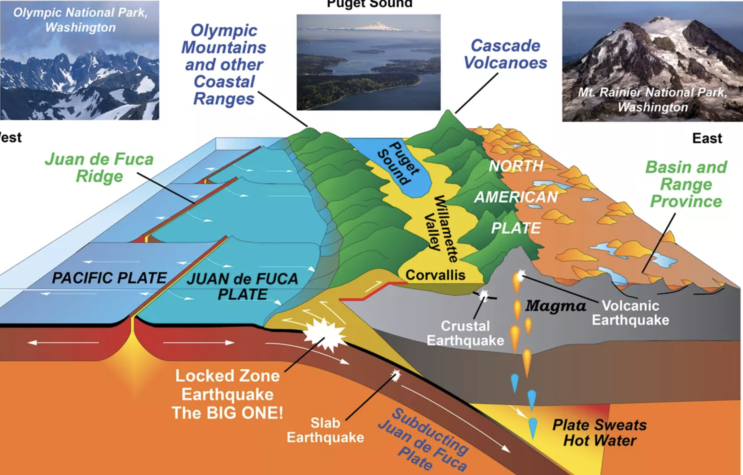This first installment is more general, addressing plate tectonics and the various forces and processes active in the Pacific Northwest. As a horticulturist with a strong interest in the biological sciences I also make an attempt to link the two. Biology and geology are inseparable. While geology is largely determinative, at a microscale biology has a direct effect on soils and the micro-climate. Geology is the overall, and changing structure, while biology is the ‘living’ surface, the interface between the mineral and the thin, living ‘skin’ between earth and space. The following two installments will look more specifically into the local and regional geologic forces in play. The third installment will be the most focused on the Canyon and our immediate locale.