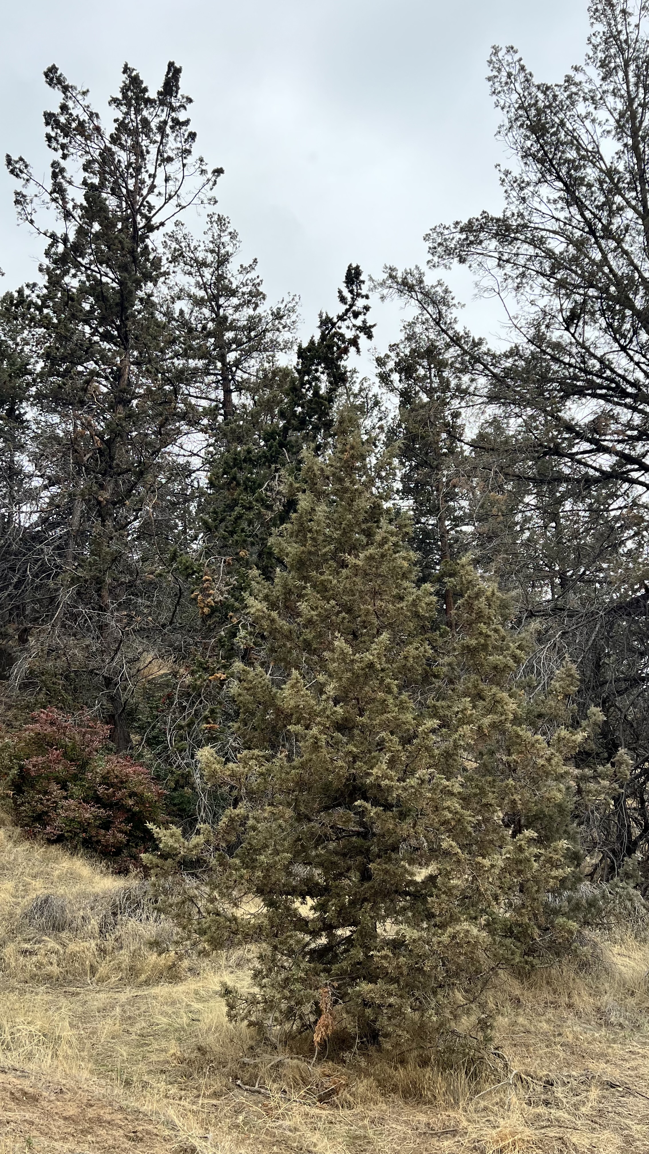 A young juniper, like most conifers, they tend to grow in a conical shape with a single leader generally evenly branched to the ground. they will maintain this form for many years of protected from fire other physical damage and are not crowded. With great age comes the character that many admire. This is due to harsh conditions.