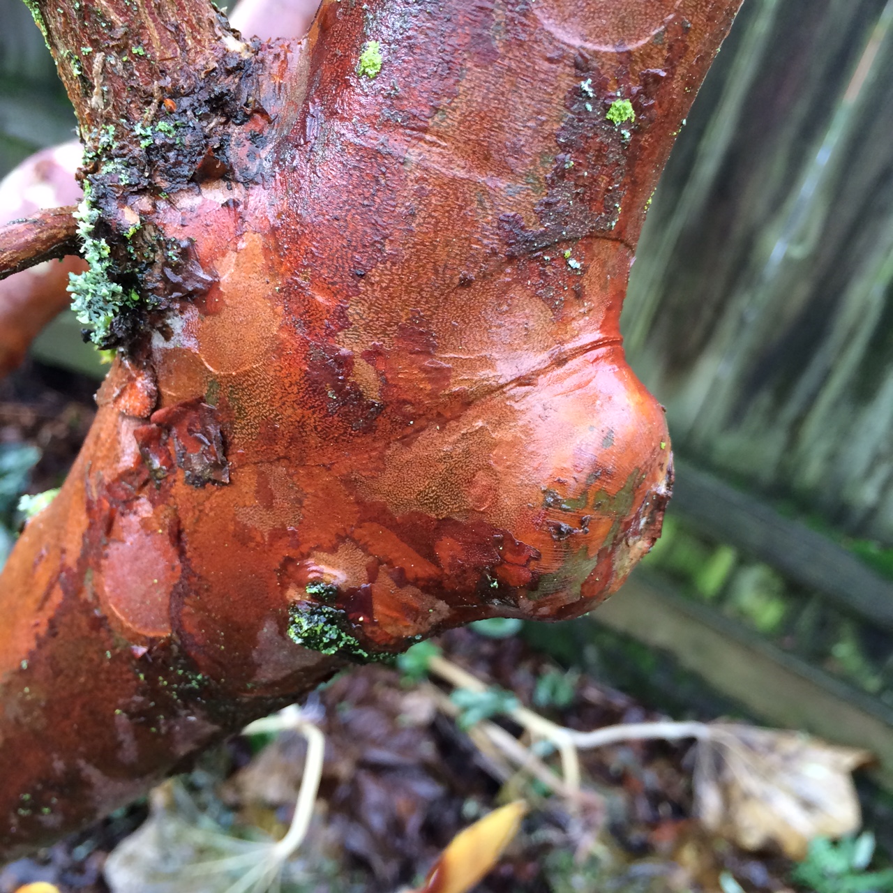 This is the Stewart monadelpha in my garden. The ‘lump’ to the right shows where callous tissue has completely covered an old pruning wound. The ‘ridge’ is still evident. The callous tissue here is less course than on the Parrotia. Callous tissue and sealing off a wound will not look the same species to species.