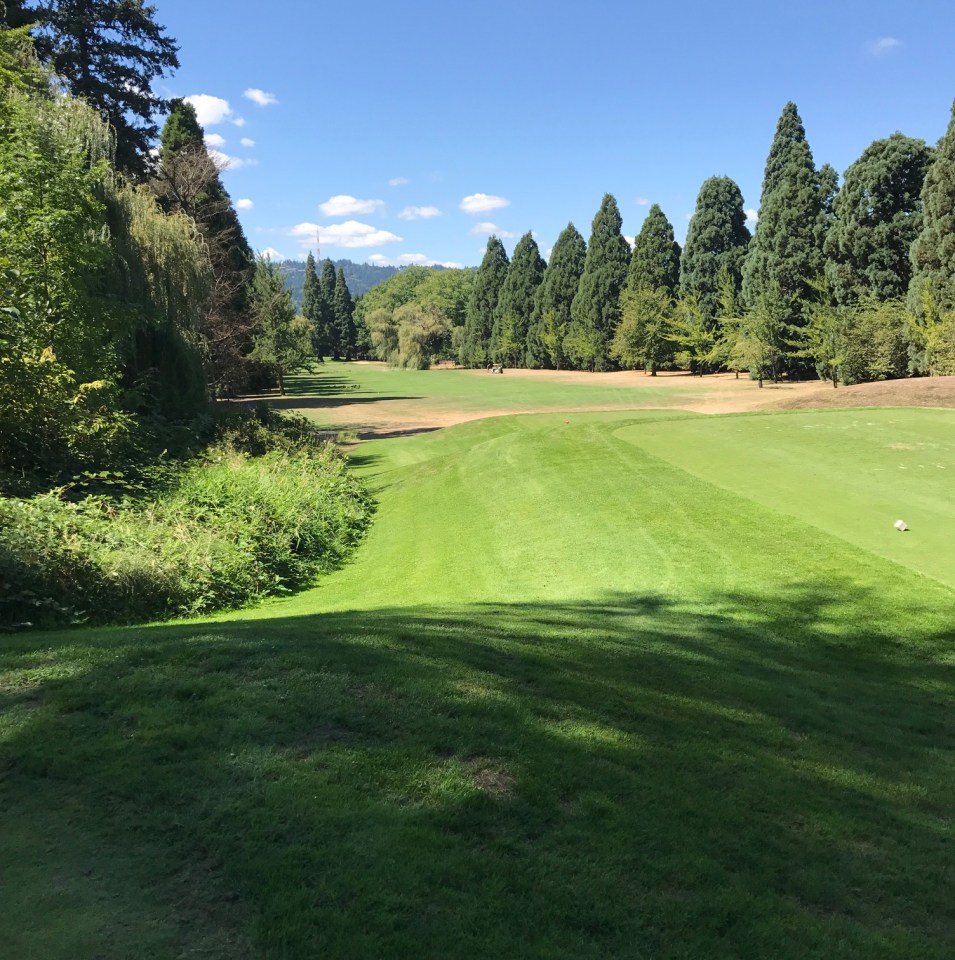 A golf course is dependent upon a healthy, vital and uniform turf. It directly influences a courses playability. Even if you don’t play golf, courses evoke a calm with their pastoral, expansive lawns and views. This is a view down the 14th fairway at Eastmorland Golf Course. The perimeter rough areas receive no water and minimal maintenance. To the left is a swath of Blackberry. Other areas are over grown with weeds with fence lines draped with the invasive Clematis.